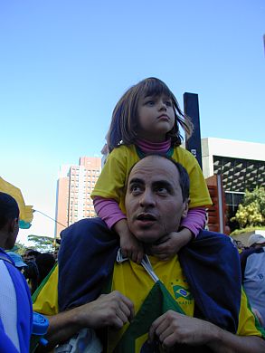 ウキウキのオトーサンの上で、女の子はお祭りの歌手に目が釘付け
